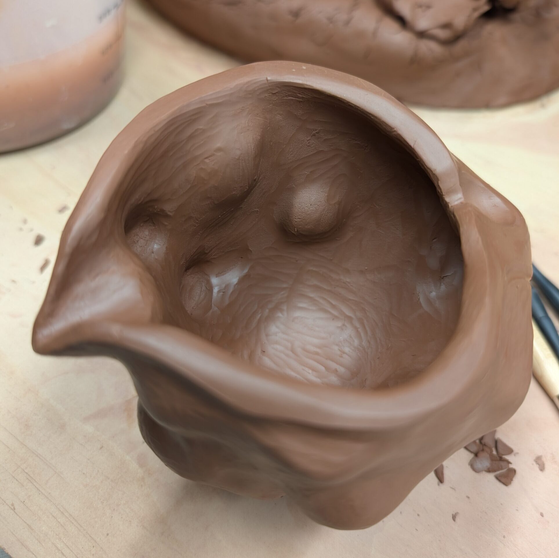 playing with earthenware November 11, 2025 thrown. altered. smoothed. and sculpted. and smoothed again. categories: earthenware, cone 06, Uncanny Valley, work in progress baby’s first kiln fire»